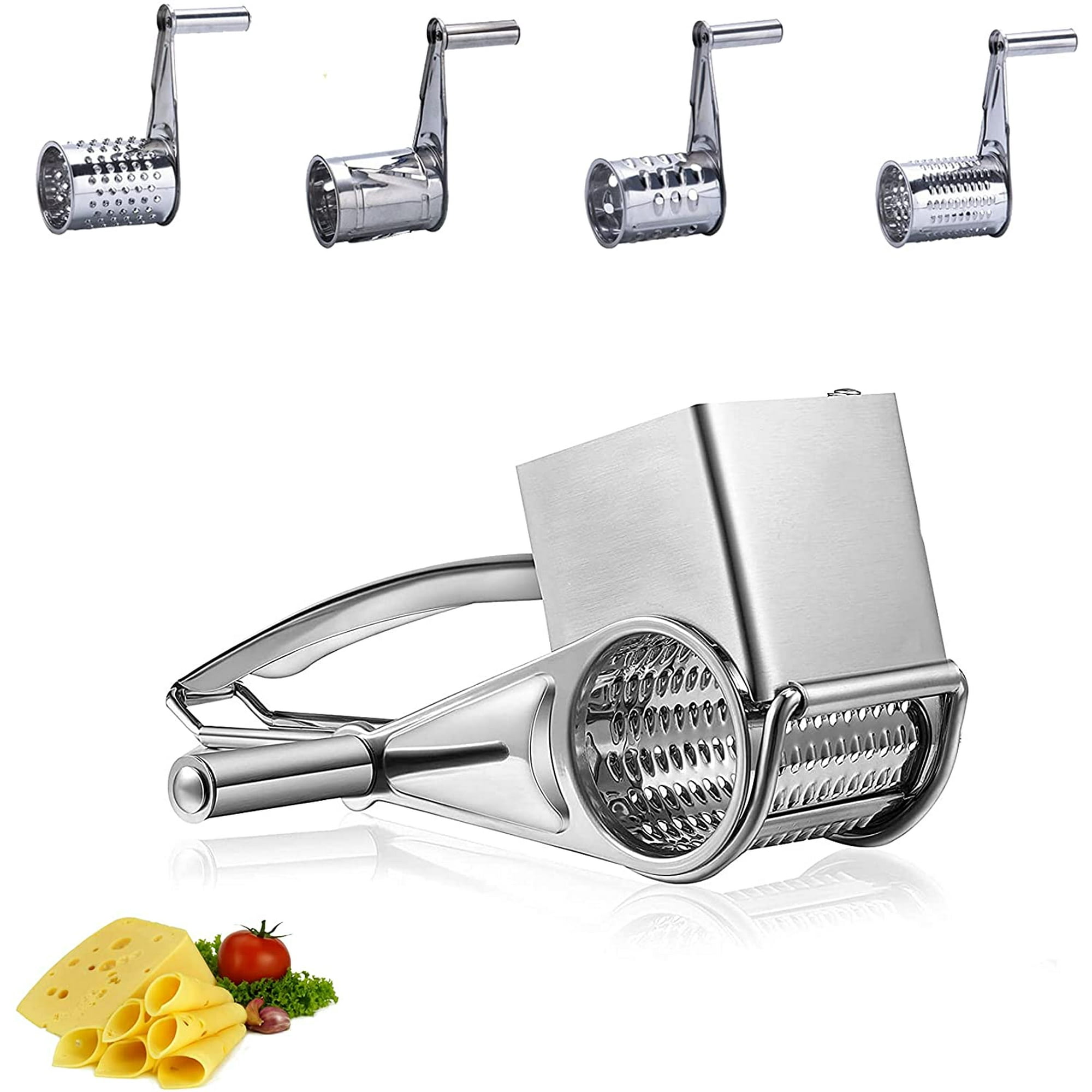 Rotary Cheese Grater 430 Stainless Steel Vegetable Shredder Cutter Grinder With 4 Drum Blades 4 In 1 Silver Walmart Canada